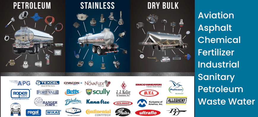 - Inventory: Largest tank trailer parts and hose inventory in America. That means in stock and ready to ship.